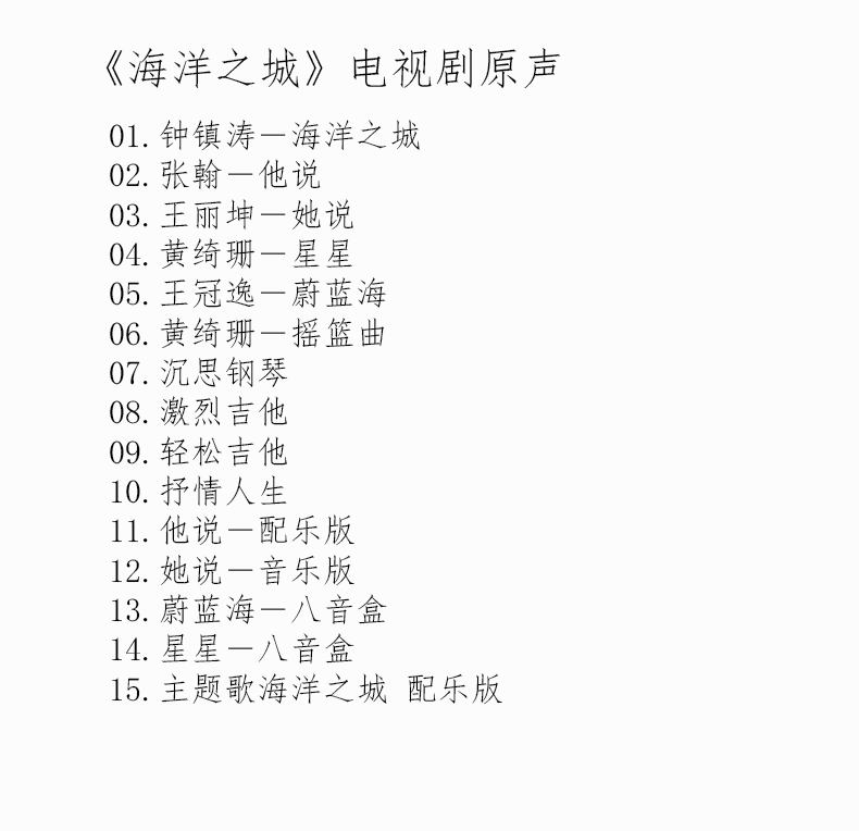 ★ 中国ドラマ『海洋之城』OST/CD オリジナルサントラ盤 張翰(チャン・ハン)/王麗坤(ワン・リークン)15曲