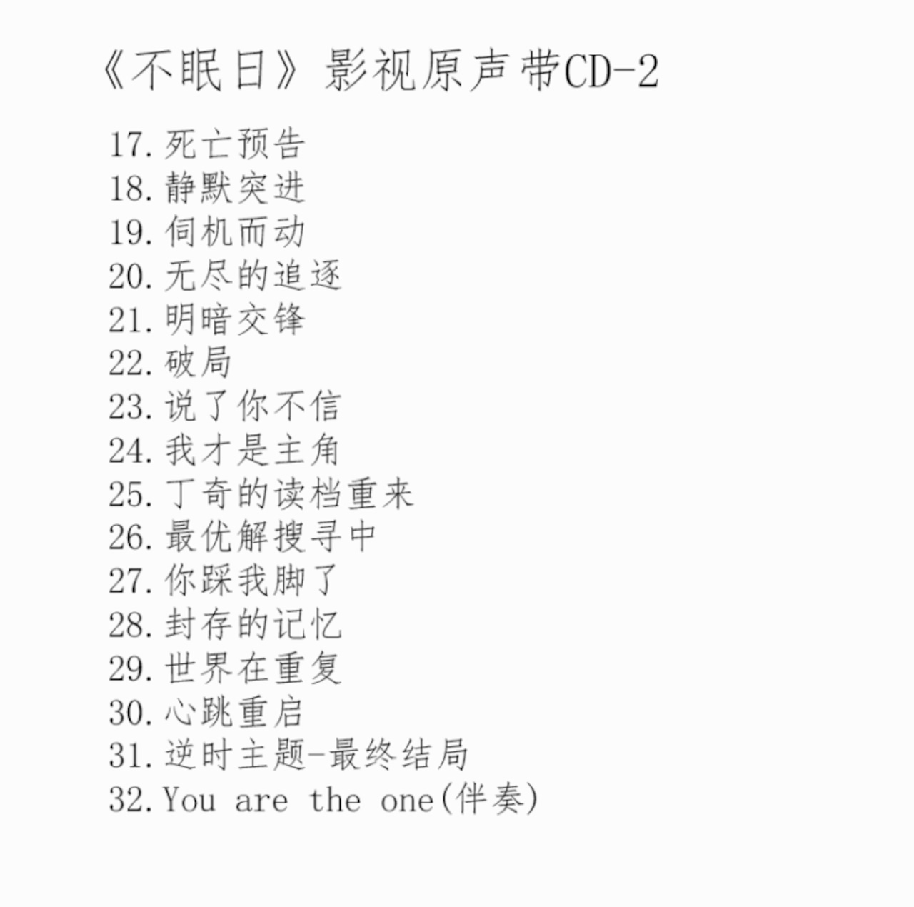 ★ 中国ドラマ『不眠日 -メビウス-』OST/CD オリジナルサントラ盤 バイ・ジンティン(白敬亭)/ジャニス・マン(文詠珊)2枚組32曲