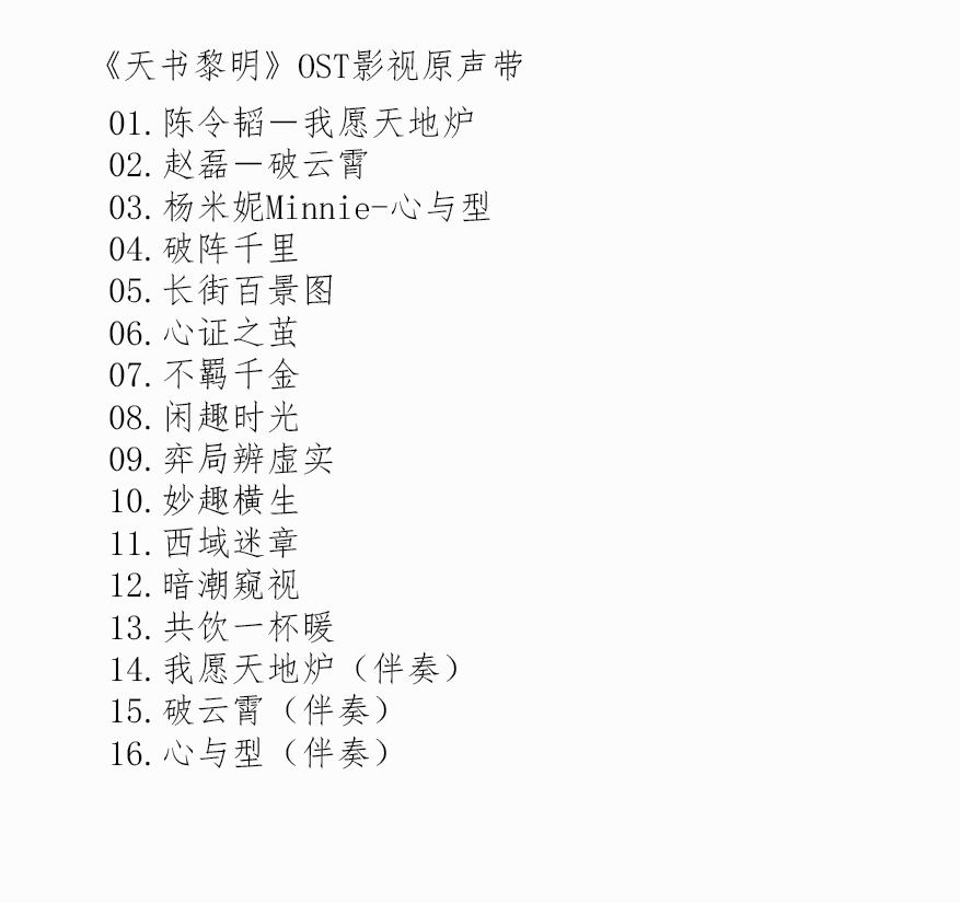 ★ 中国ドラマ『天書黎明(てんしょれいめい)』OST/CD オリジナルサントラ盤 リー・ホンイー(李宏毅)/スー・シャオトン(蘇暁彤)1枚16曲