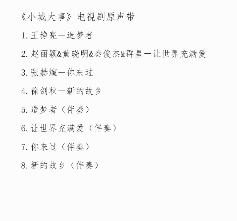 ★ 中国ドラマ『小さな町での大きな出来事』OST/CD オリジナルサントラ盤 チャオ・リーイン(趙麗穎)/ホアン・シャオミン(黄暁明)1枚8曲