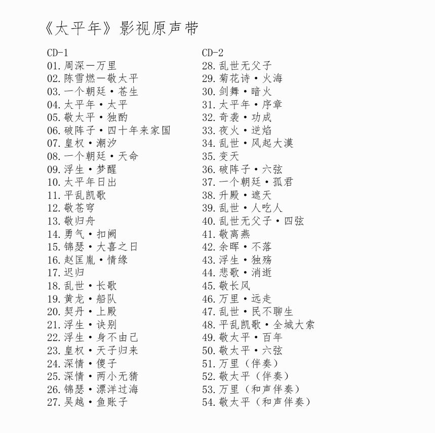 ★ 中国ドラマ『太平年』OST/CD オリジナルサントラ盤 バイ・ユー(白宇)/チョウ・ユートン(周雨彤)2枚組54曲