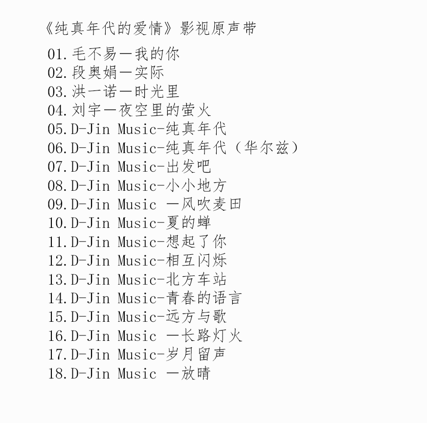 ★ 中国ドラマ『純真年代的愛情』OST/CD オリジナルサントラ盤 チェン・フェイユー(陳飛宇)/スン・チェン(孫千)1枚18曲
