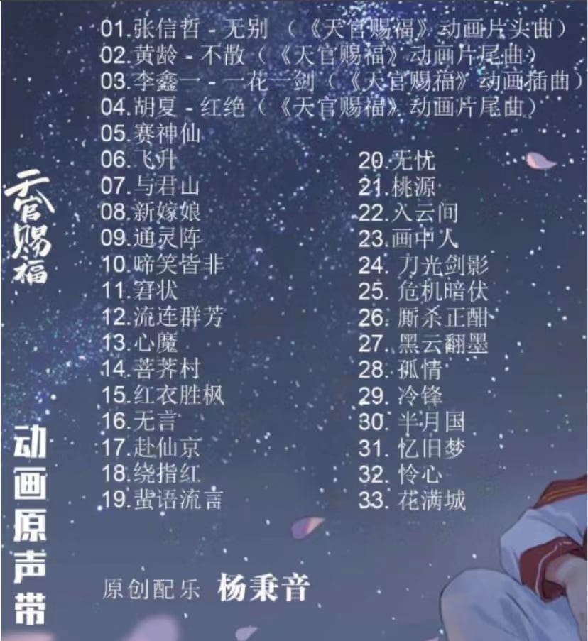 中国盤★アニメ『天官賜福』てんかんしふくOST/CD1枚組33曲